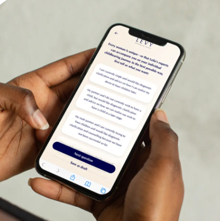 LEVY Health streamlines the fertility work-up, triages, and educates patients, so they are ready to talk treatment at the first consult. Fertility treatment can be overwhelming, leading to drop-outs and no-shows. LEVY Health educates and engages patients early on. So they move forward feeling confident, in control, and supported. Within a minute of scheduling the first consult, patients start their path to treatment with their virtual fertility workup. No need for your doctors to spend hours of valuable time manually recording patient data. Now, the first consultation is all about discussing the best treatment options. One trip less to the clinic. Patients answer questions about their health background, partner, and lifestyle conveniently from the comfort of home. Avoid potential mistakes from manual data entry. LEVY Health’s diagnostic algorithms are evidence-based and always up-to-date, lowering the chance of lawsuits.
