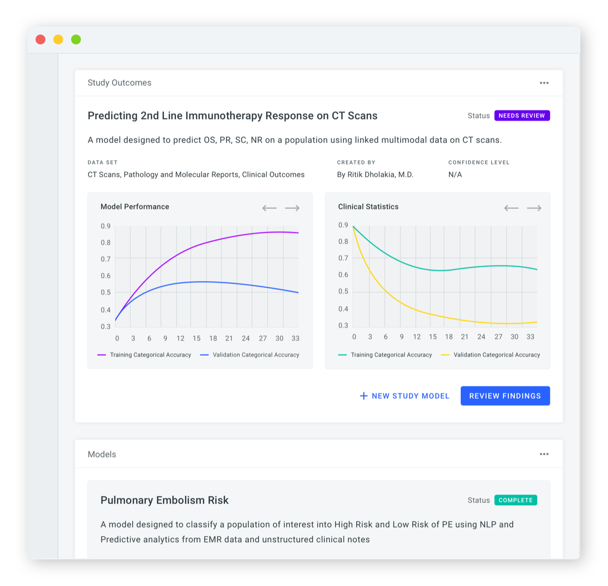 EVIDENS, our AI platform enables digital cohort discovery, research, collaboration, and insight sharing on hospital-wide data sets. Quickly annotate and link your data into AI-ready data sets. Quickly filter populations based on clinical outcomes or demographics. Filter populations with limitless keywords by training AI models to search with them. Explore and create criteria to identify cohorts with smart AI assistance. Quickly train AI models to automate analysis and categorize data into groups. Output AI-ready cohorts to test your study’s clinical hypothesis. Easily view the status and tasks for all your projects and collaborators. View and follow activity based on your research interests and projects. Use collaborative tools to work in parallel to create, train and validate AI models.