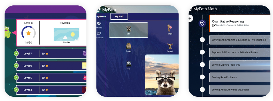 Imagine MyPath is an adaptive intervention program designed to accelerate learning for students in grades K–12 by providing personalized, age-appropriate instruction in reading and math. Utilizing assessment data, the Smart Sequencer assigns individualized learning paths tailored to each student's proficiency level, adapting instruction based on mastery checks to ensure comprehension before progressing. The program features built-in adaptive assessments and integrates with NWEA MAP or Renaissance Star 360 to accurately place students and minimize testing time. Teachers receive real-time data on student engagement and progress through an intuitive dashboard, enabling timely interventions with downloadable mini-lessons and printable guided notes. Imagine MyPath offers scaffolded, evidence-based practices, gradually increasing text complexity in reading and strengthening foundational skills in math to prepare students for algebra.