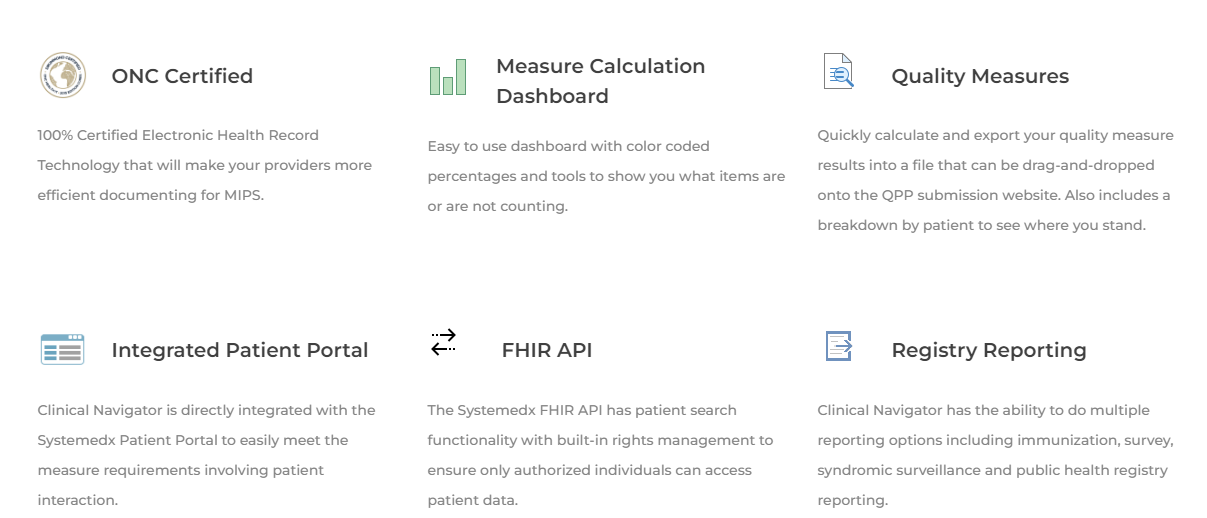 One-click navigable capabilities within Systemedx Clinical Navigator empower users with a tabbed-based interface that promotes more time spent directly with a patient than behind a screen entering data. Clinical Navigator is programmed with flexibility in mind, from custom workflows, including the customization of forms and documents, to customizable configurations, for multiple office visits and billing options, our system is adaptable for your practice based solely on the workflows that work best for you. Reduce clicks and searching with proven workflows and custom templates to fit your provider's needs. Systemedx adds new features and makes systematic improvements based on client feedback and suggestions.