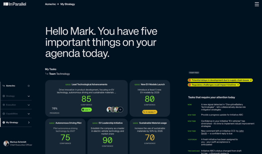 In Parallel’s Intelligent Operating Model uses an innovative operating model framework to mirror your organization’s internal and external environments in real-time. By aligning strategy and execution continuously, this agile operating model enables your organization to proactively navigate challenges and capitalize on opportunities, driving operating model transformation and operational excellence.