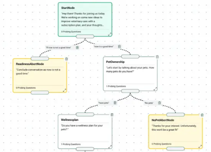 unSurvey is a conversational AI platform to automate conversations end-to-end. Infinitely scalable, human-like AI‑moderated interviews and analysis. Actionable customer insights in hours, not months. Describe your conversation in natural language, and let our AI design a flow for you. Easily drag and drop topics and add logic using natural language. Dynamic, human‑like voice, video, and text conversations in 50+ languages. Raw transcripts, summaries, and keyword identification. Listen or read entire transcripts, or jump straight to summaries and key moments. Conversational Insights with deep‑linked citations. Get real‑time reports that combine both qualitative and quantitative insights. Structured data extraction and visualization. Download clean, structured data extracted automatically from each conversation, along with pre‑built visualizations. Participation access controls and invitation flows.
