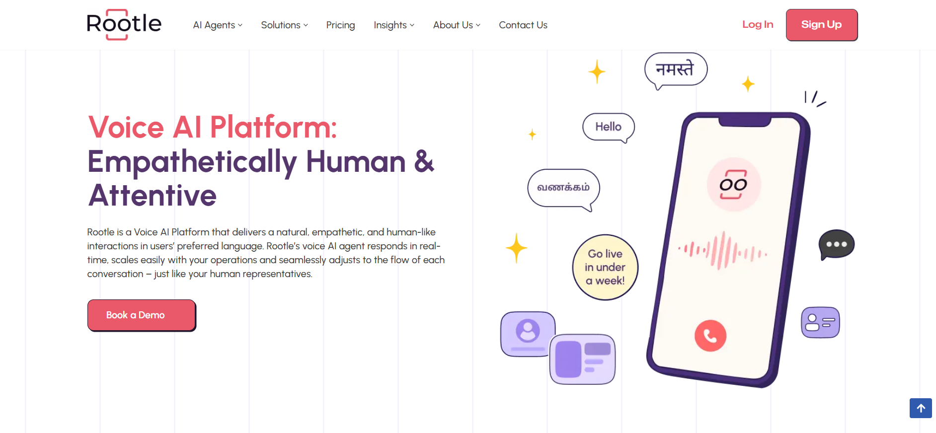 Built for enterprise environments, Rootle integrates seamlessly with existing CRM, support, and HR systems. It provides operational visibility, measurable outcomes, and cost efficiencies by reducing manual effort and scaling voice operations without proportional increases in headcount.