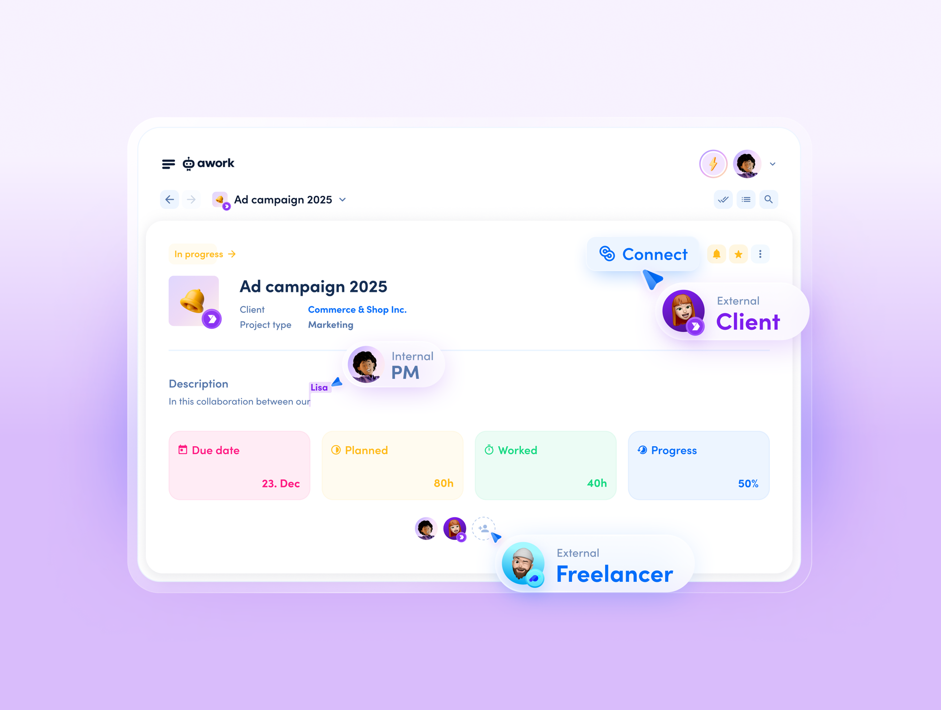 awork is ideal for all teams and organizations working with a large number of projects and aiming to improve their daily work management – for example, agencies, consultancies, IT & tech companies.