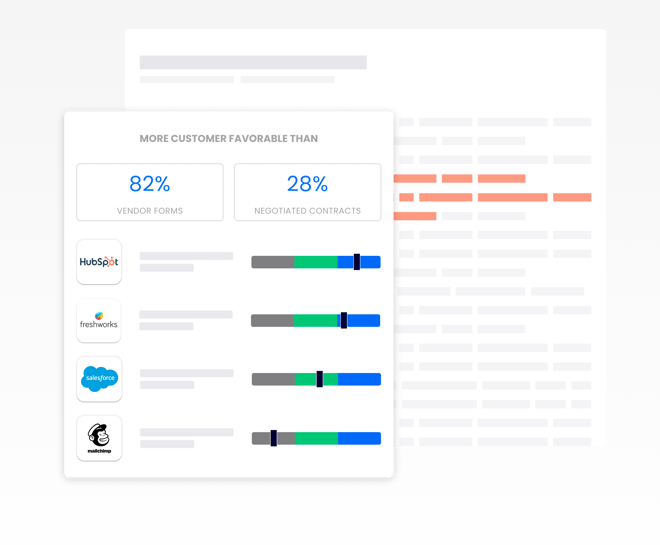 TermScout's hybrid approach combines AI and attorneys to generate contract reviews with over 99% accuracy. That’s better than any AI or human on their own. It’s a match made in heaven. We focus on contracts covering the purchase or license of IT services, software, cloud, hardware, professional services, independent contractor services, hardware, and NDAs. We are constantly adding more contract types to our contract review service. Receive a data-fueled category "gut check" and see how your software contracts can position you for success. Align your business partners with your contract goals. The information you need to make critical decisions. Save time by quickly signing favorably-rated contracts.