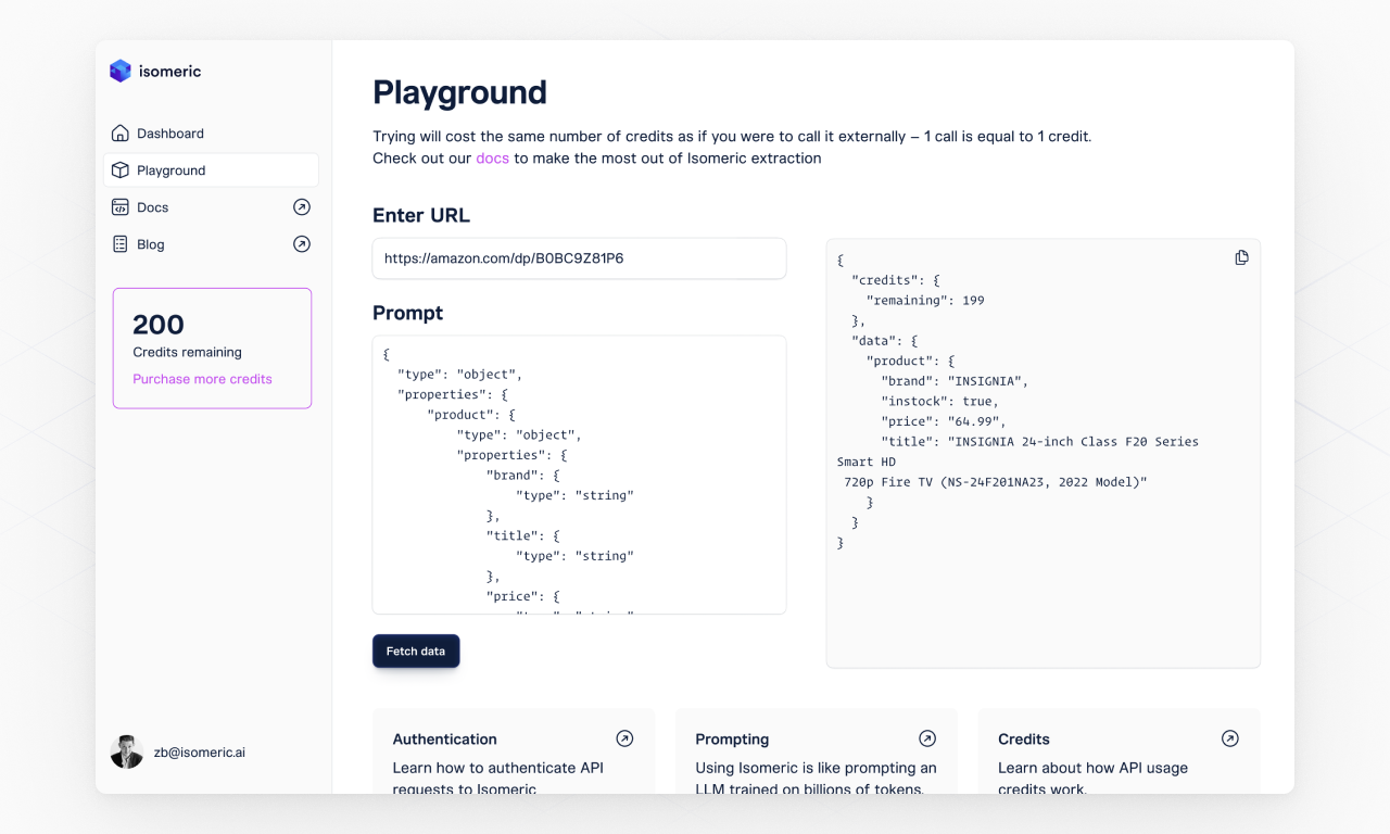 Isomeric is an API service that—using advanced AI—transforms unstructured website text into structured JSON. Replace your entire scraper stack with a single API call.