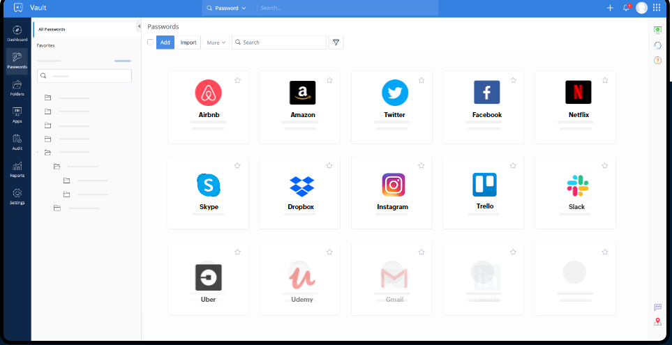Say goodbye to memorizing passwords. Let us do it for you. Zoho Vault is a secure password manager that safely manages your passwords and autofills them across websites and applications. Unlimited password storage, seamless autofill, fine-grained admin controls–Vault has it all. Get clear security insights into both your personal and business passwords. Identify any weak passwords and change them in just a few clicks. Securely store, share, and manage passwords with different levels of access privileges. You can also add notes, documents, credit cards, software licenses, SSH keys, and more to your password vault. Organize passwords and other confidential data into groups as folders and sub-folders for easy password management and bulk-sharing. Allow users to log in to their everyday apps without passwords. Our catalog readily supports hundreds of popular cloud apps, as well as options for custom integration.