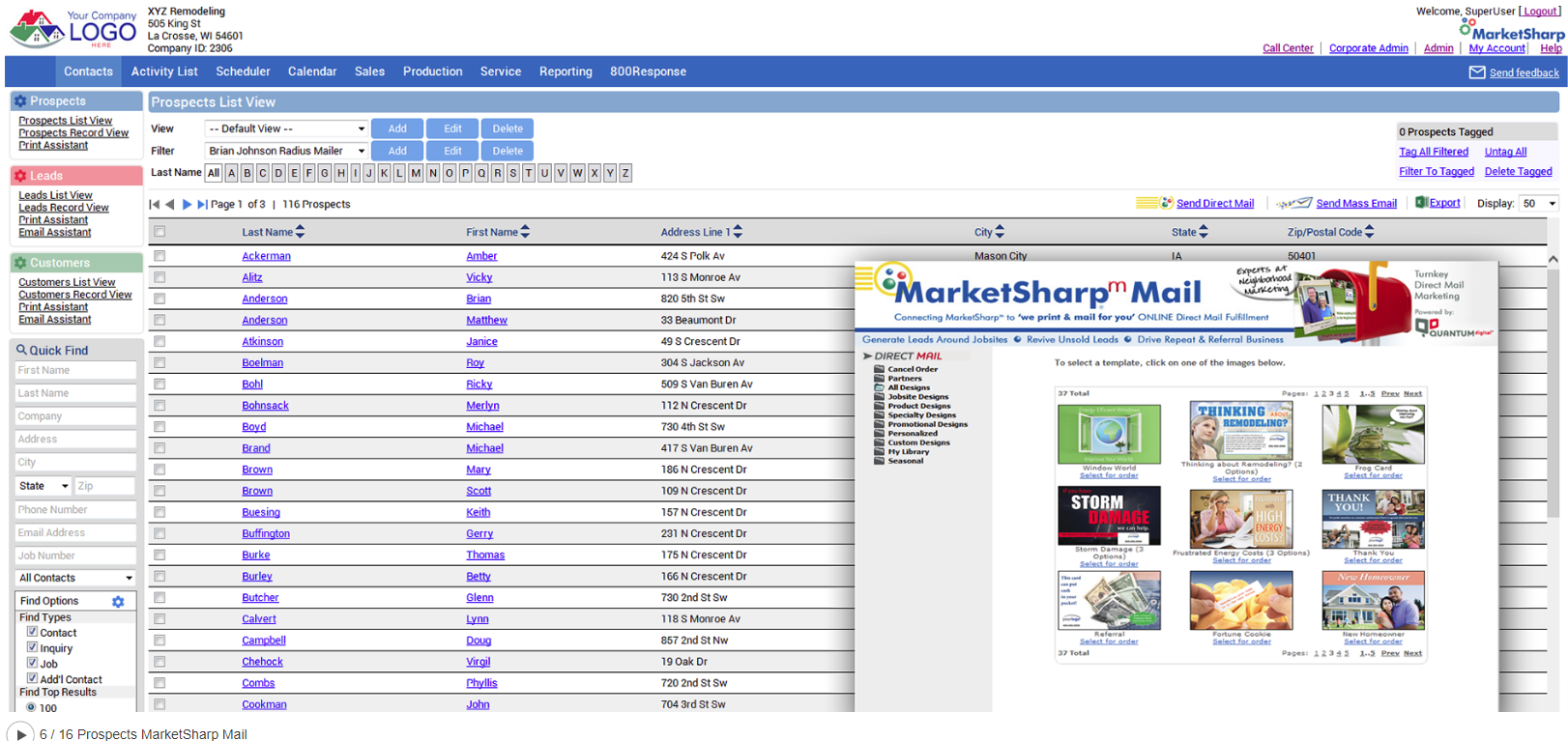 MarketSharp is a simple-to-use, web-based customer relationship management (CRM) software solution designed specifically for contractors, remodelers, and home improvement professionals. With mobile accessibility and enterprise-level features that include task scheduling, project estimation, lead management, and project management capabilities, MarketSharp helps create satisfied referral-giving customers, generate more qualified leads, close more profitable sales, and increase production volume.