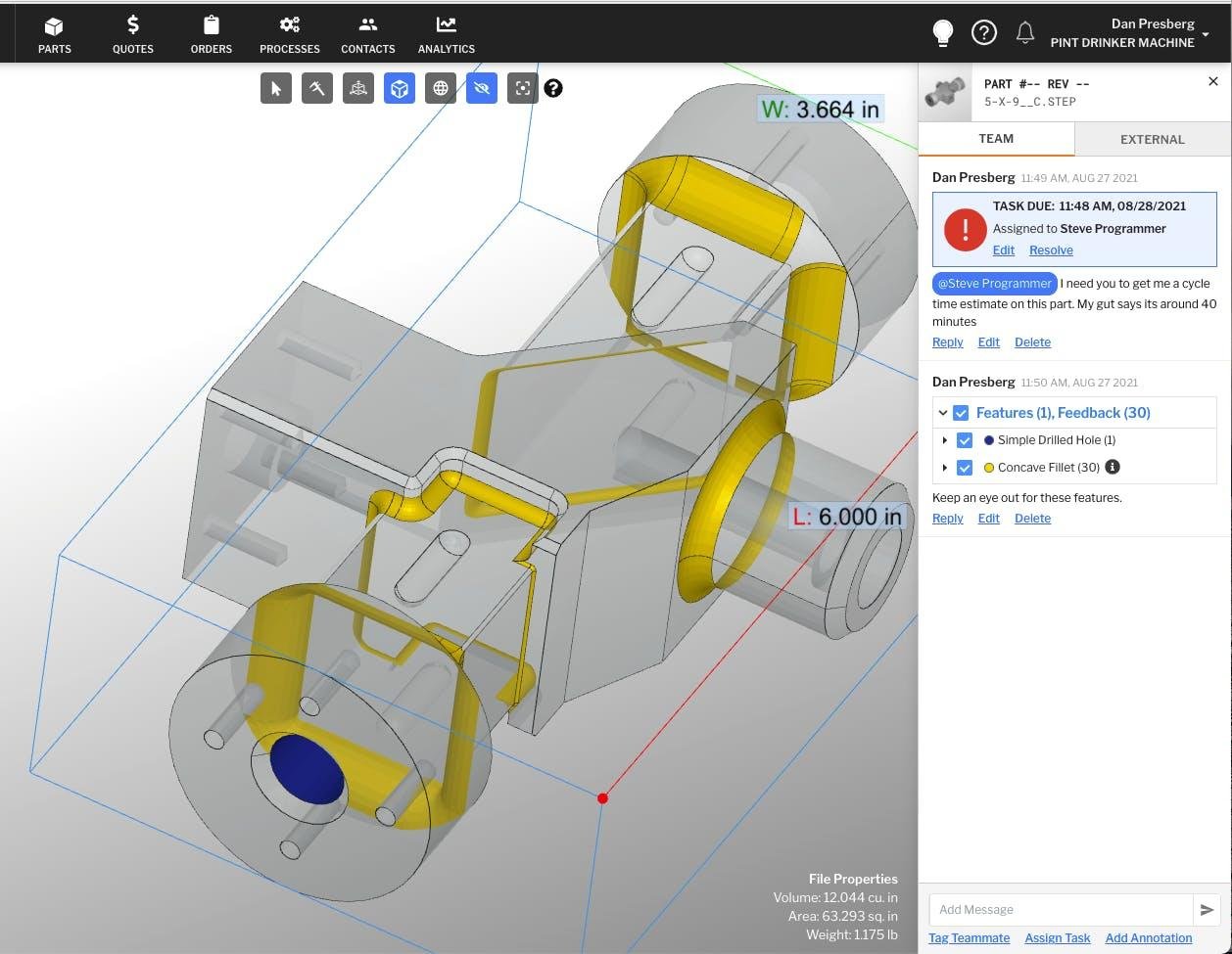 Paperless Parts is the secure estimating and quoting software for manufacturing that empowers shops to make smarter, faster, more informed decisions. Communicate better, quote faster, win new customers, and increase revenue. Paperless Parts is simple to implement, easy to use, and seamlessly integrates with existing software tools. Relationships matter and nothing makes us more grateful than our happy customers. Thanks for ranking us as leader and high performers. Automated part file analysis provides information like setup count, process-specific feature detection, manufacturability warnings, and volume removal that drive costs and automated pricing for faster quoting. Manage risk with a more streamlined and automated estimating process. Empower your team to make better decisions with your data. Our cloud-native platform is built using a modern and secure tech stack. Teams using Paperless Parts increase revenue and profitability.