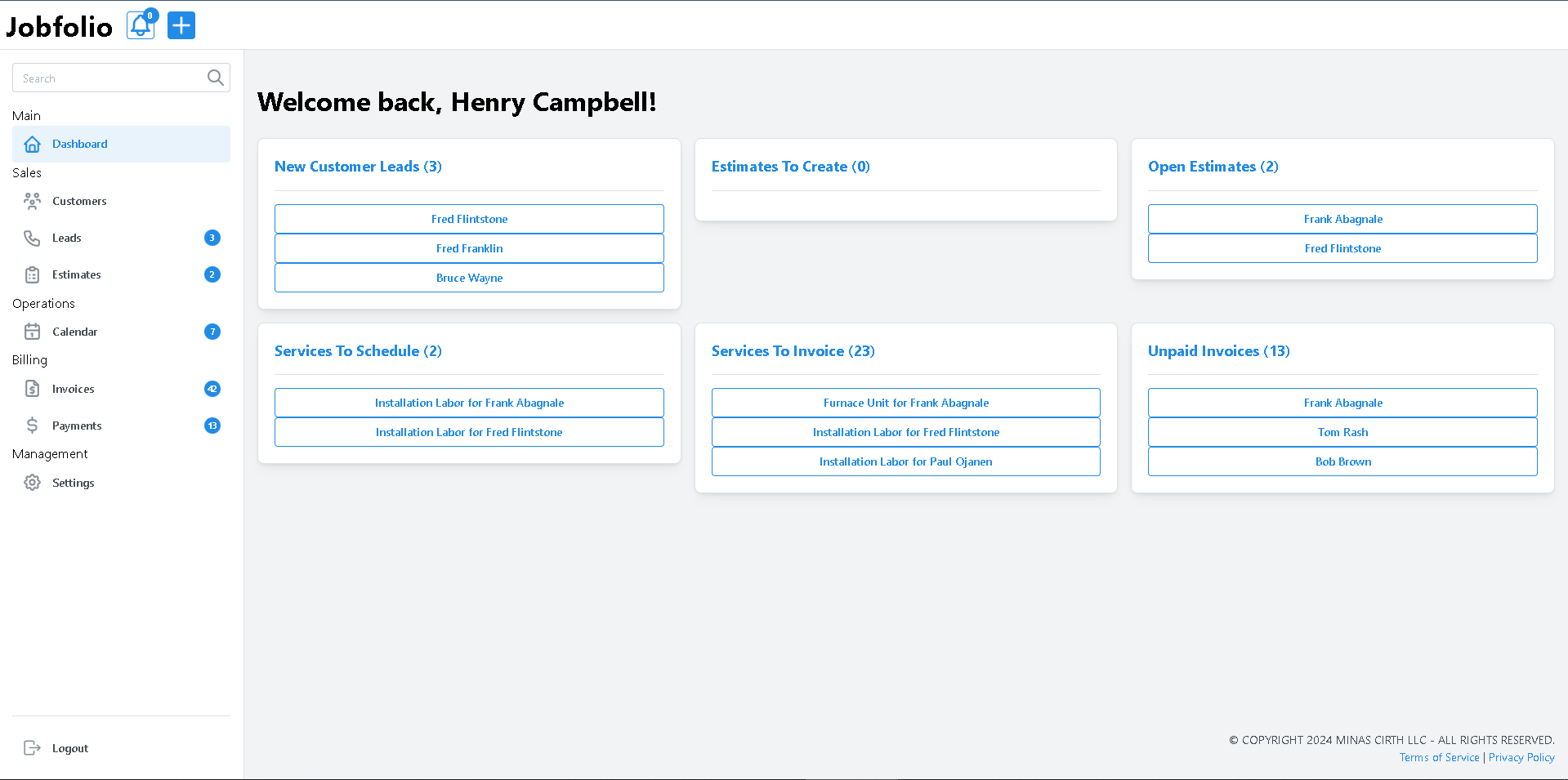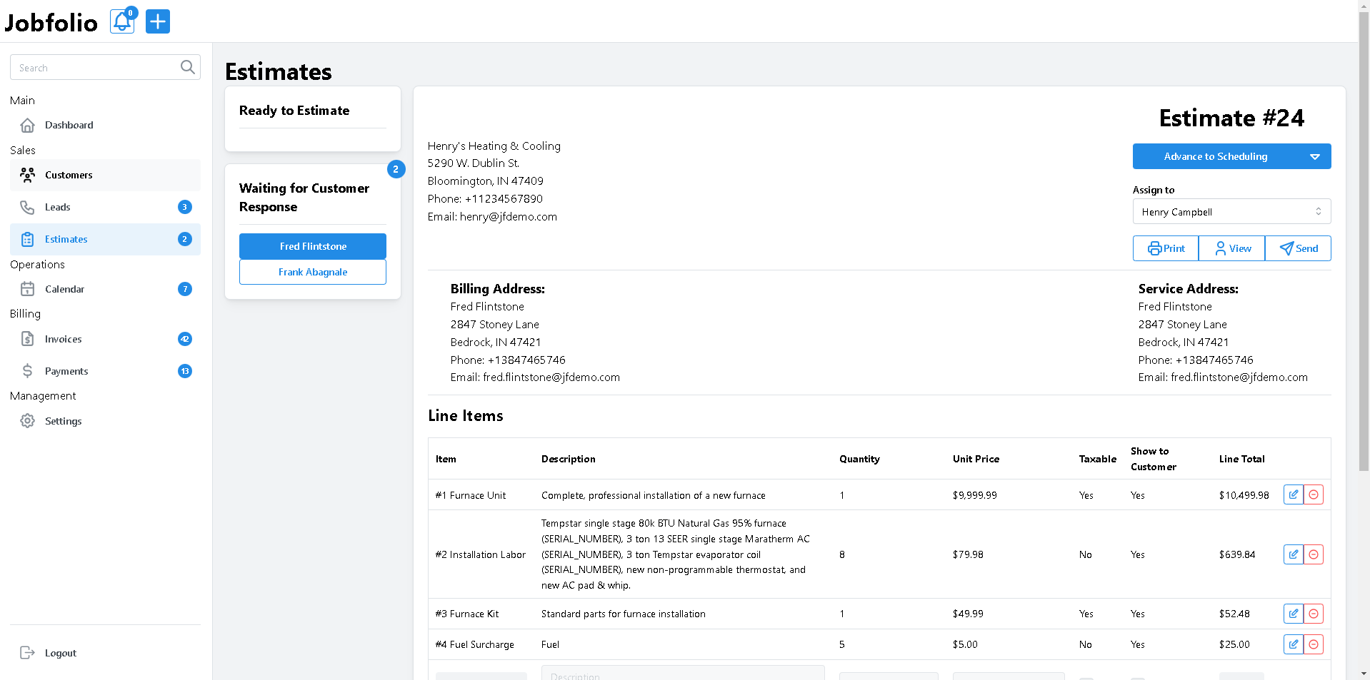 Jobfolio is a cloud-based job management solution that helps you manage job leads, estimating, scheduling, and billing. You have the power to speed up your office work with online customer access, status updates, and digitally signed estimates. With Jobfolio, you can be sure that there's no job left behind.