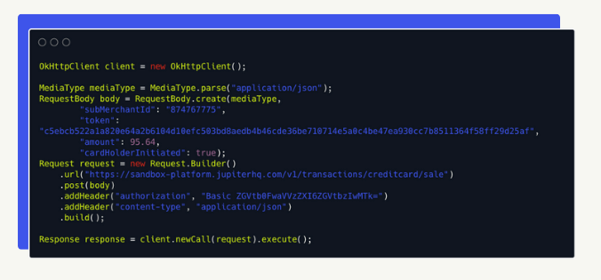 Created for the modern developer looking for a flexible technology stack with an easy-use single API. Accept cards, onboard by us or through us with your own team, process with your gateway or ours. Use our experience to maximize your value. Jupiter facilitates the process of implementing eCheck, credit, and debit card payments within your platform or marketplace. Jupiter provides two different approaches to onboard a sub-merchant. Our online onboarding flow, and a customized onboarding experience through our provisioning API. Execute any possible credit card operations and check operations (sale, authorization, capture, refund, rollback, and void operations). The Jupiter API is organized around REST. Our API has predictable resource-oriented URLs, accepts and returns JSON-encoded, and uses standard HTTP response codes, authentication, and verbs. Jupiter lets you widely customize your sale information and take control of your business fees.