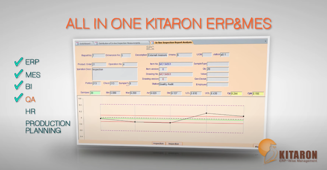 KITARON Explore is a limited version of the KITARON ERP&MES system that enables management and control in real-time all the logistical needs of the organization. such as customers, orders, purchasing, inventory, warehouses, employees, and more. Tracking in real-time production data by receiving updated data from robots, machines, and employees. Collecting production data in a central database received directly from the machines. Connecting the Kitaron ERP system to machine controllers. Send and receive data between Kitaron ERP and OPC Server. Sending a file by machine parameters when an event is defined. Sending commands to the machine by moving the OPC server tags.