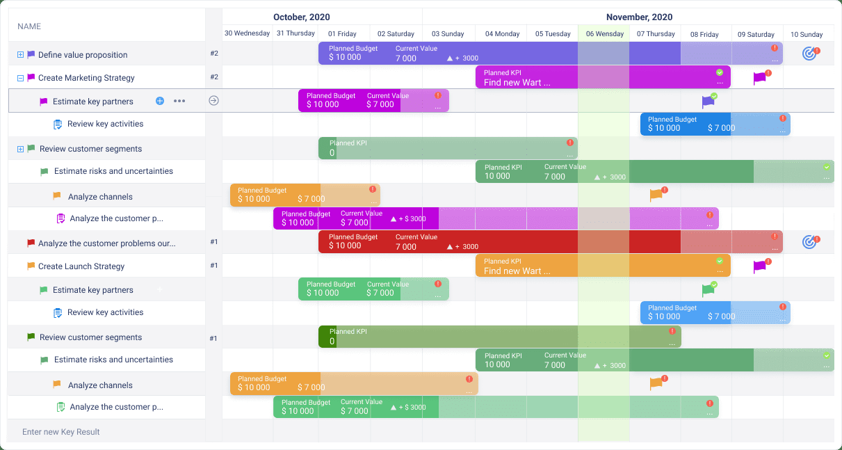Decompose your objective into key results of various sublevels, and tasks. Create an objective map of any complexity to achieve the most challenging objectives. Any action is associated with a specific objective, and each objective has its own action plan. Benefit from all the needed information accessed at the right time and located in the right place. Analyze the results and performance of your team in general and each team member in particular in accordance with your objective. Using measurable success criteria, you achieve your ibjective with a specific KPI, at the planned time, and with the needed budget. Always see your weaknesses and easily change your current plans to achieve your objectives more effectively. Make adjustments to your plans and always keep them up to date. The Sprints functionality helps you to handle the most challenging tasks.