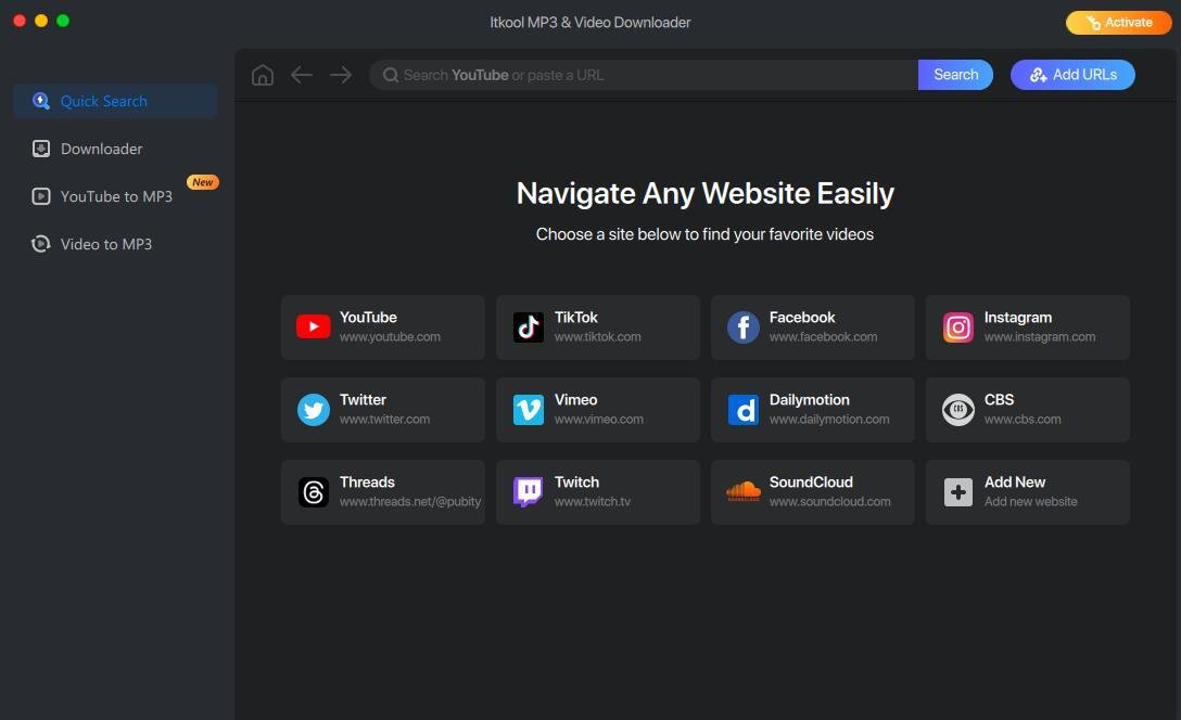 Experience seamless media downloads with Itkool Video Downloader. Effortlessly save high-definition videos and 320kbps MP3 files from over 1,000 platforms, including YouTube, Facebook, TikTok, Twitter, Instagram, and SoundCloud. Enjoy features like batch downloading, playlist support, and one-click video-to-MP3 conversion. Compatible with Windows and macOS, Itkool offers a user-friendly interface, built-in browser, and supports 10 languages.