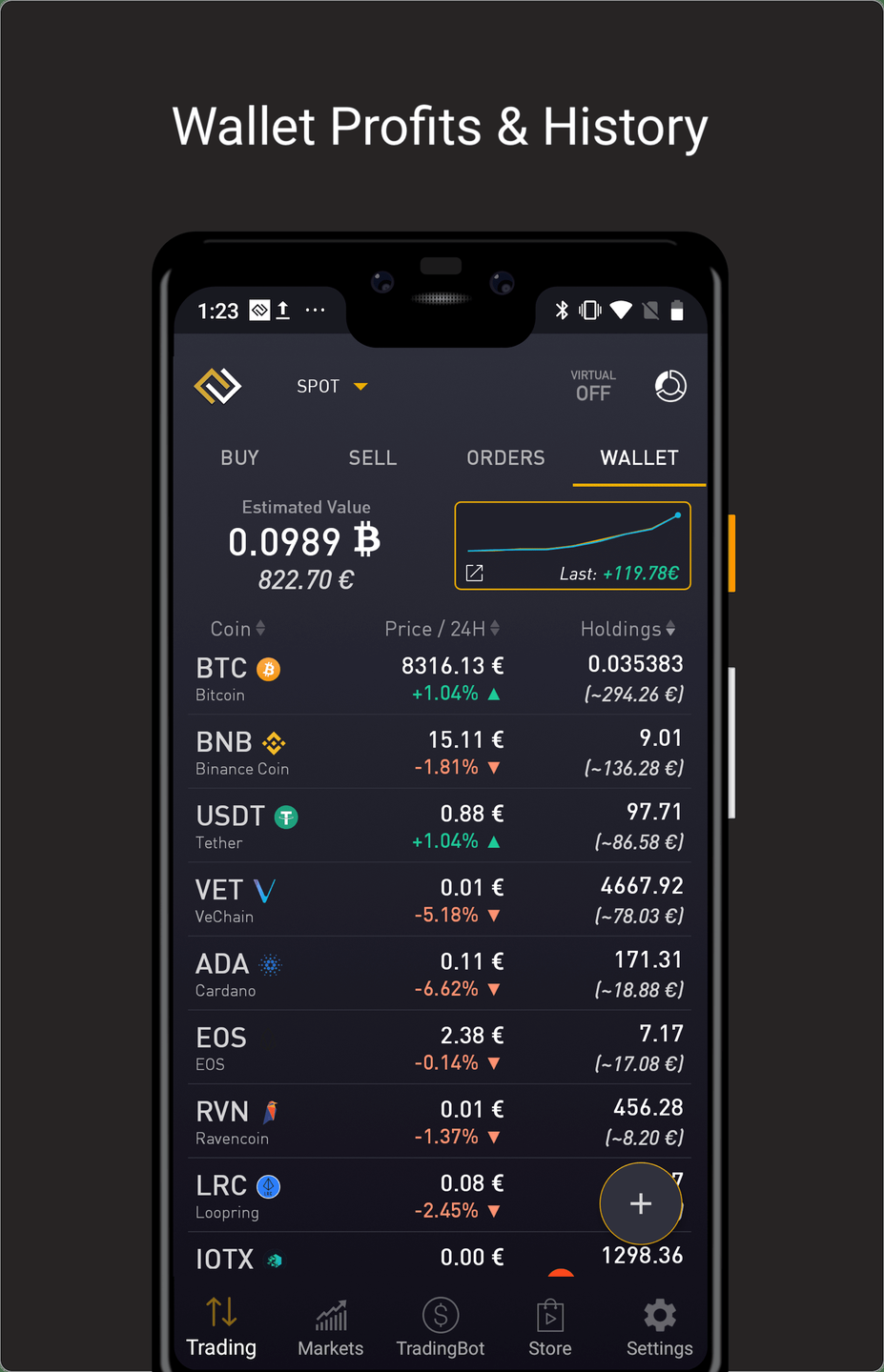 Increase your profits at Binance US with Profit Trading! Welcome to the the quickest, easiest and best Binance US mobile client. Buy and sell faster at Binance US with a quick and easy to use interface. Buy and sell any currency in Bitcoins with a quick and easy to use interface. Designed to make trading easy, you will love it. Buy and sell Bitcoin (BTC) with USDT. Now included BTC, USDT and USD markets. Check your open and closed orders quickly. Cancel your open orders in an easy way. A full list of all the currencies in your wallet with their BTC and FIAT equivalences and the total Bitcoin amount. The best place to control your cryptocurrencies. Full chart of each coin, with prices and volume history. Get profits with conditional orders. Configure the market, the coin and the buying and selling prices and let the bot place the orders for you, so you just have to wait and get your profits. Place an optional stoploss to be able to control disadvantage market conditions.