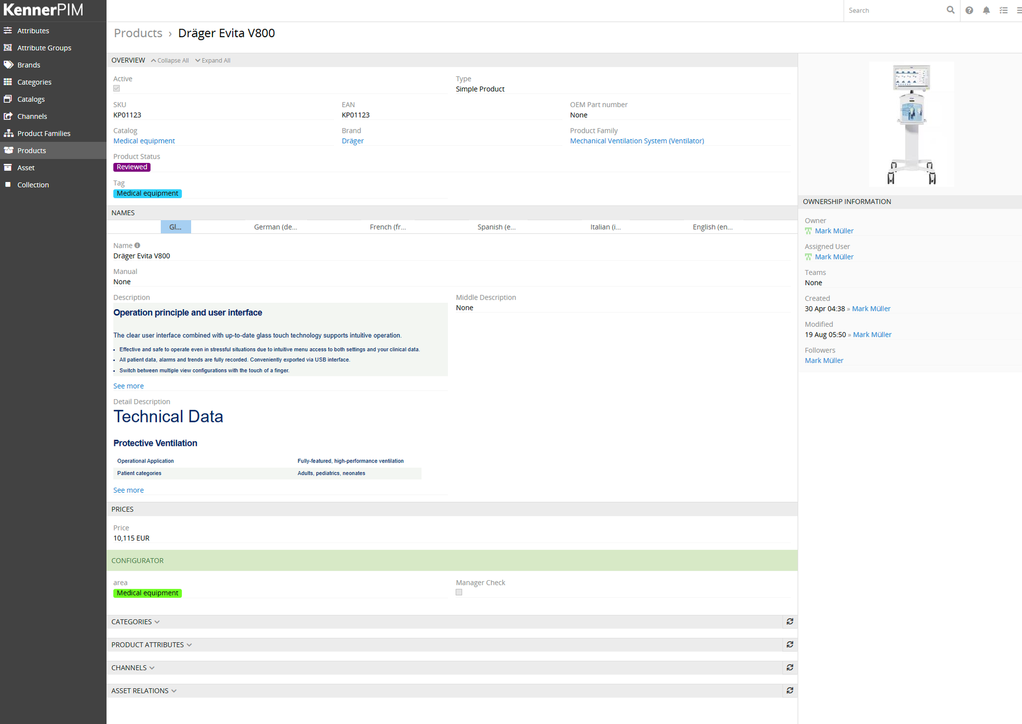 The system has an intuitive web interface and robust role and rights management for effective team collaboration. Using an API-first approach, KennerPIM easily integrates with ERP, CMS, and major e-commerce platforms (e.g., Shopware, Magento, Shopify). It includes product lifecycle management (PLM) features and an AI-powered product configurator that detects errors and simplifies the process of creating complex commercial offers for end consumers.