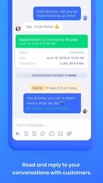 Kimoby is your Dealership Engagement System (DES), designed to simplify and accelerate customer communication. It's a central hub that integrates with your DMS, offering: Effortless Texting: Two-way texting, automated messages, and translations make communication a breeze. Video to Customer: Build trust with videos! AI summaries and estimates speed up approvals. Simplified Payments: Accept and process payments quickly and easily. Loaner Management: Manage your loaner fleet efficiently, avoiding unexpected fees.