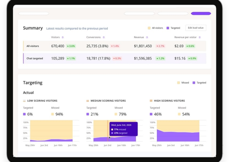 98% of website traffic is anonymous. Lift AI predicts the 'buyer intent' of those visitors in real-time, so you can engage and convert them in chat before they leave the site. Lift AI's sophisticated AI model predicts every visitors' likelihood to buy or convert (known as 'buyer intent') with incredible accuracy, even if those visitors are completely anonymous. Lift AI automatically surfaces web visitors with a high buyer intent so your sales team can prioritize them through live chat (before visitors leave the site), while low buyer intent visitors are engaged with chatbots. Combine Lift AI's buyer intent score with your other intelligence tools to maximize their efficacy. For example, a high buyer intent visitor that is also a target account may be further prioritized in chat or follow-up. On average, Lift AI users get 9x more conversions on their website from chat to pipeline.