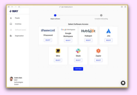 WAY brings magic capabilities to your existing fleet. WAY comes with a powerful platform to manage your devices. Sync your people via almost any HRIS or Slack and assign devices to them. Your devices are automatically set up with all software and must take security measures when the device is started for the first time. WAY sets up devices with software and must-do security. WAY automatically handles your inventory. WAY takes care of any device- shipment with special shipping boxes and pre-printed shipping labels. WAY handles all device logistics including remote device returns. WAY lets you wipe devices from anywhere & sell old devices. Automatically wipe devices during offboarding and trade in old devices for cash. WAY makes sure all your devices run on the latest operating system. Start for free and upgrade when you need it. WAY makes sure your devices are up to date.