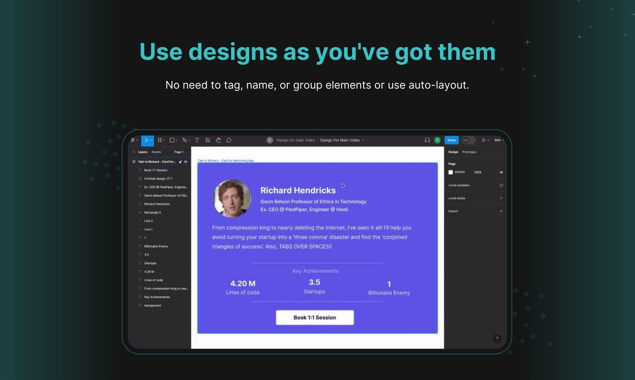 Front-end developers seeking an AI-integrated visual design canvas inside their coding workflow to streamline UI design and bridge the gap between design and production code