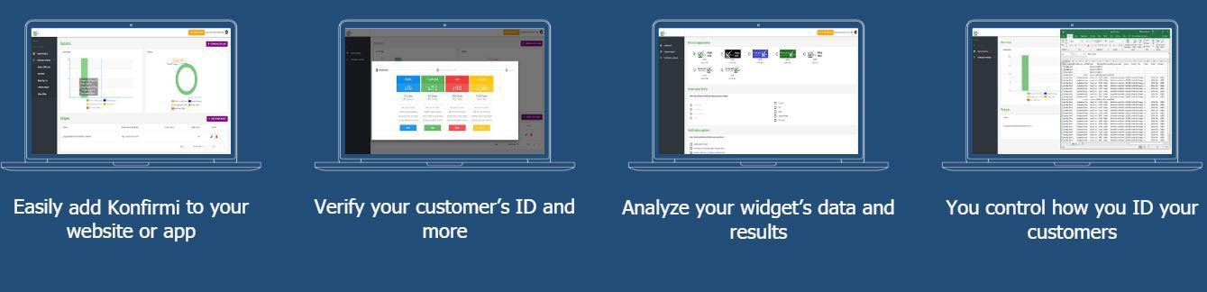 Konfirmi gives your website or app easy-to-setup verification (which you can combine or use standalone). Verification methods include: - 2 Factor Authentication / Multi Factor Authentication (2FA/MFA) - SMS/Email verification - True age verification (KBA Checks) - True customer name/address/info verification (KBA Checks) - Biometric Authentication - Single Sign On (SSO). Check age, addresses, photo IDs, more. Quickly add to any website or application. Comply with various USA and other laws. Small Business and Enterprise options. Konfirmi‘s patent-pending system allows you to automatically verify your customer’s information, including age, physical address, email address, phone number, and photo ID in any app, user sign up or registration page, e-commerce store, contact form or survey, or other web-facing system. Quickly start using Konfirmi in your website or application.
