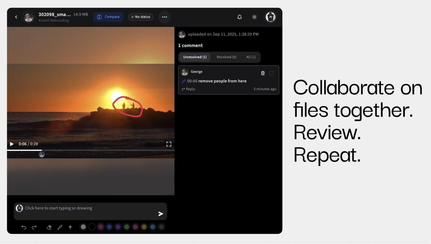 In short: Kreatli streamlines how creative/digital teams collaborate, review media, share feedback and track projects all in one place.