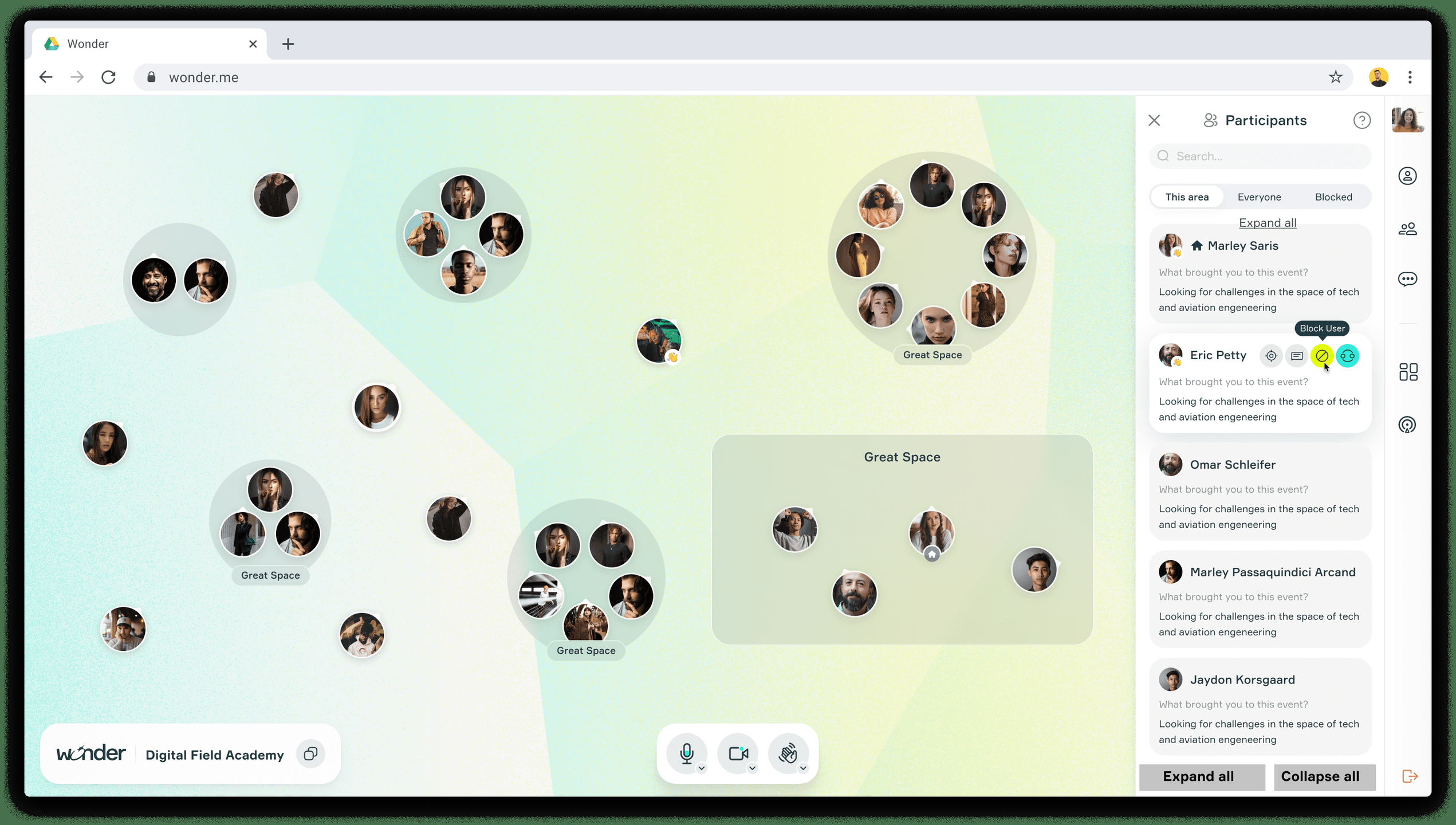 Wonder is a virtual space for groups to get together in a way that feels natural and energising. Some features that describe Wonder:
