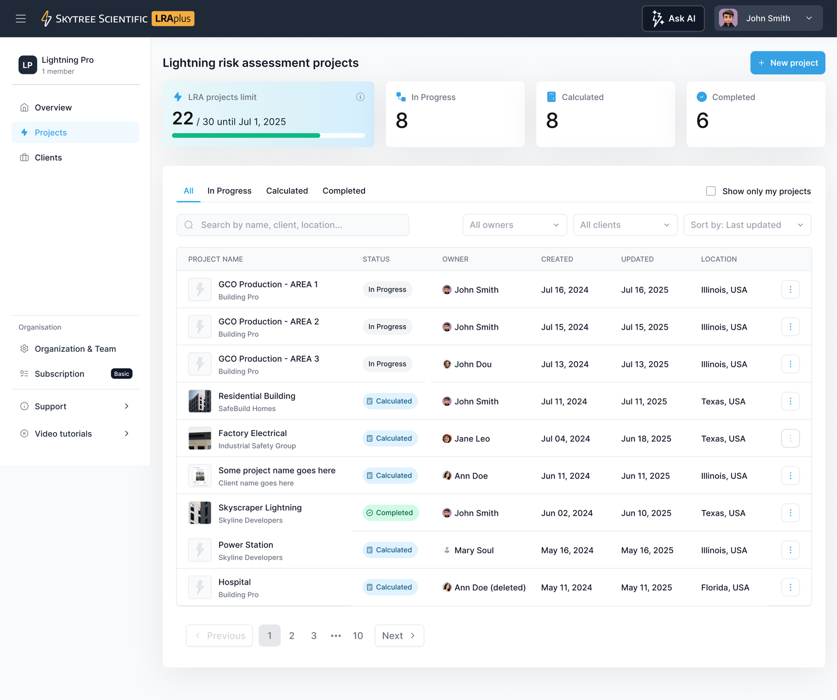 LRA Plus™ is a comprehensive AI-powered lightning risk assessment platform developed by Skytree Scientific that transforms lightning protection engineering by accelerating assessment workflows up to 90% while ensuring compliance with international standards including IEC 62305 and NFPA 780.