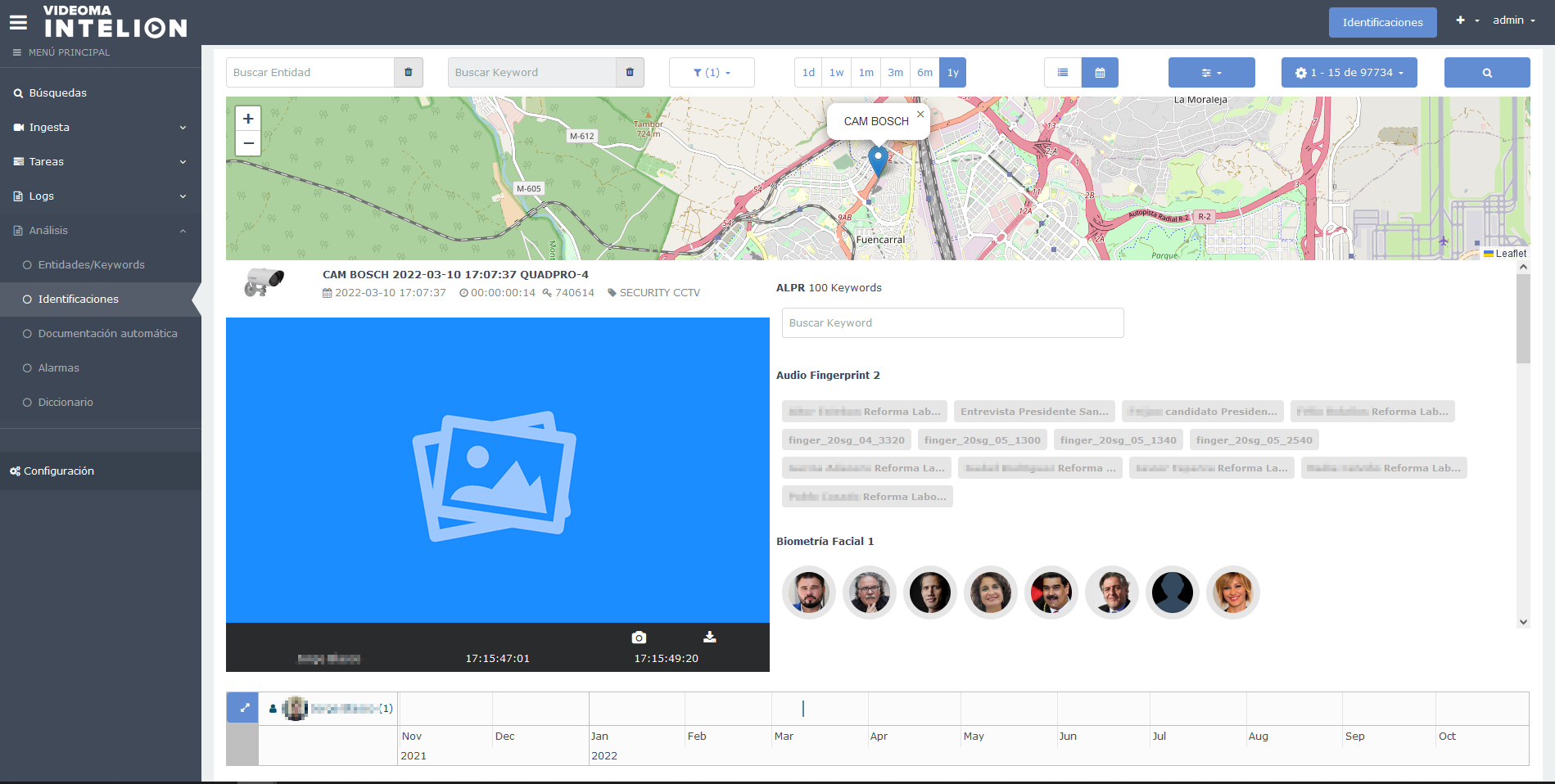 Intelion is a Law Enforcement software that integrates with any VMS and processes video files, live surveillance cameras, live TV and radio broadcasts or content from online platforms massively in an unattended manner. It applies advanced, AI-based analyzers to automatically classify all that information and locate targets in near real-time.