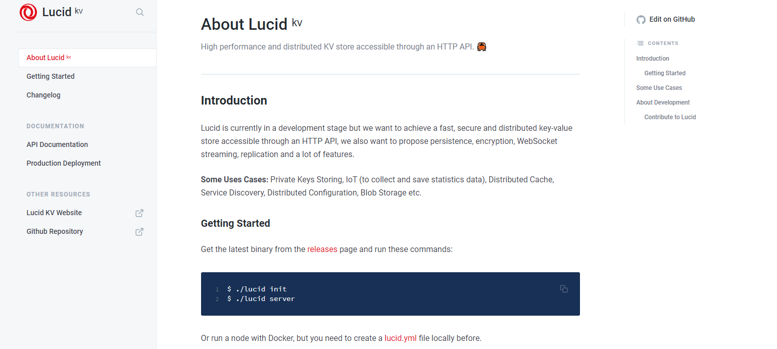 Lucid is currently in a development stage but we want to achieve a fast, secure and distributed key-value store accessible through an HTTP API, we also want to propose persistence, encryption, WebSocket streaming, replication and a lot of features. Private Keys Storing, IoT (to collect and save statistics data), Distributed cache, service discovery, distributed configuration, blob storage etc.