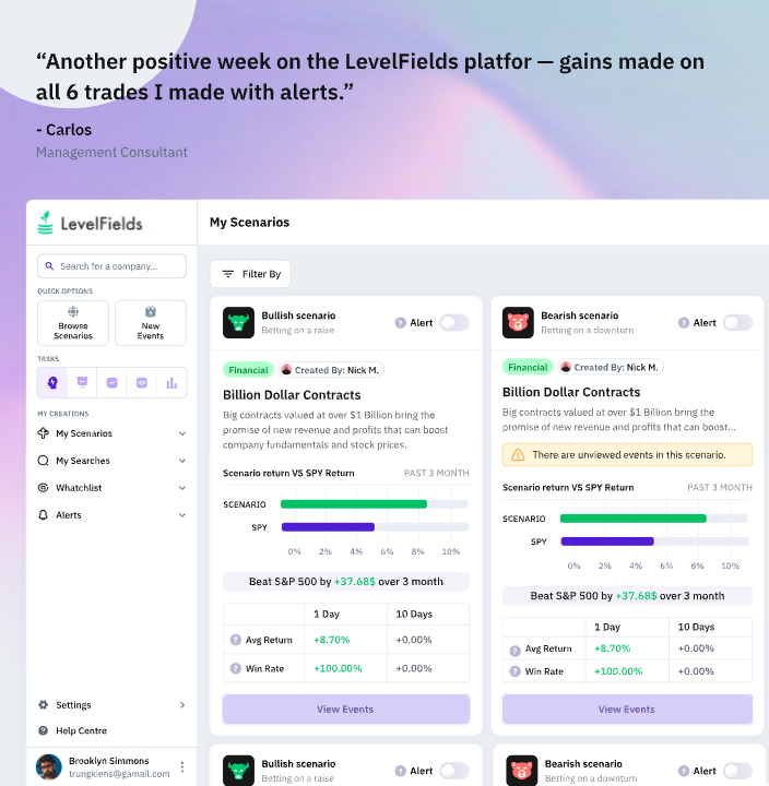 LevelFields is an AI-driven fintech application that automates arduous investment research so investors can find the best stocks and options trade faster and easier. Throw away your spreadsheets, calculators, and thousands of stock recommendations from "analysts" that litter the news. LevelFields removes the opinion, guesswork, and emotion from investing.