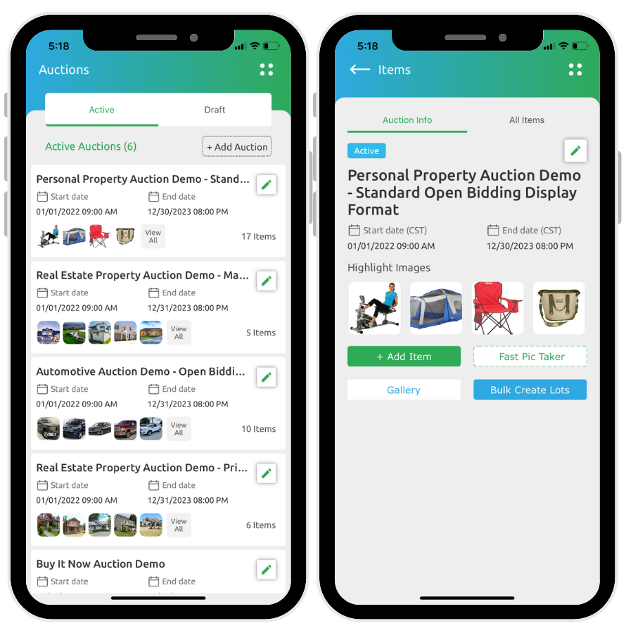 • iOS/Android Mobile App, create and manage your auction on the go