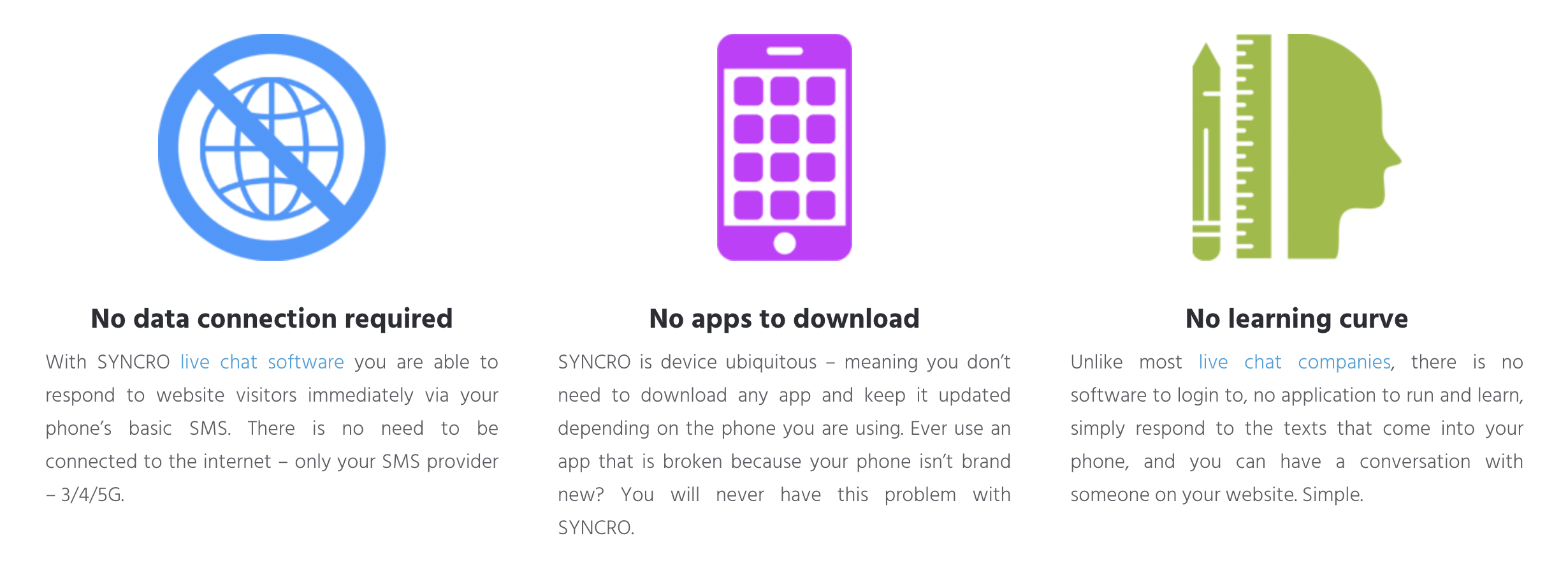 SYNCRO is a new live chat software on the market that has built its technology around SMS exclusively, so you can do some pretty cool things. Most people are familiar with live chat software. However, most people are not familiar with what chat tool is the right fit for your style of doing business. The most common flaws we found with live chat service providers and live chat apps are pretty obvious. You either have to be sitting in front of your computer to respond to customer leads, or you need to have someone else respond on your behalf. This combination can be detrimental to your business. Firstly, nobody wants to feel as though they are chained to their desktop. Secondly, and this is a question you should ask yourself honestly – Why would I want to outsource communication with hot leads?