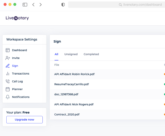 LiveNotary is a remote online notarization platform for individuals, notaries, and businesses. Enter your commission details, and we will provide you with a State compliant stamp and digital signing certificate. Bring efficiency to your notarized agreements and save everyone's time, either you bring your own notary or use one of our own. our notaries have been completed more than 10,000 notarizations online, and are here to help you every step of the way. Record all of your notarial acts as required by your State, mitigate risks and reduce fraud by security notarizing agreements within a platform that's easy to trust.
