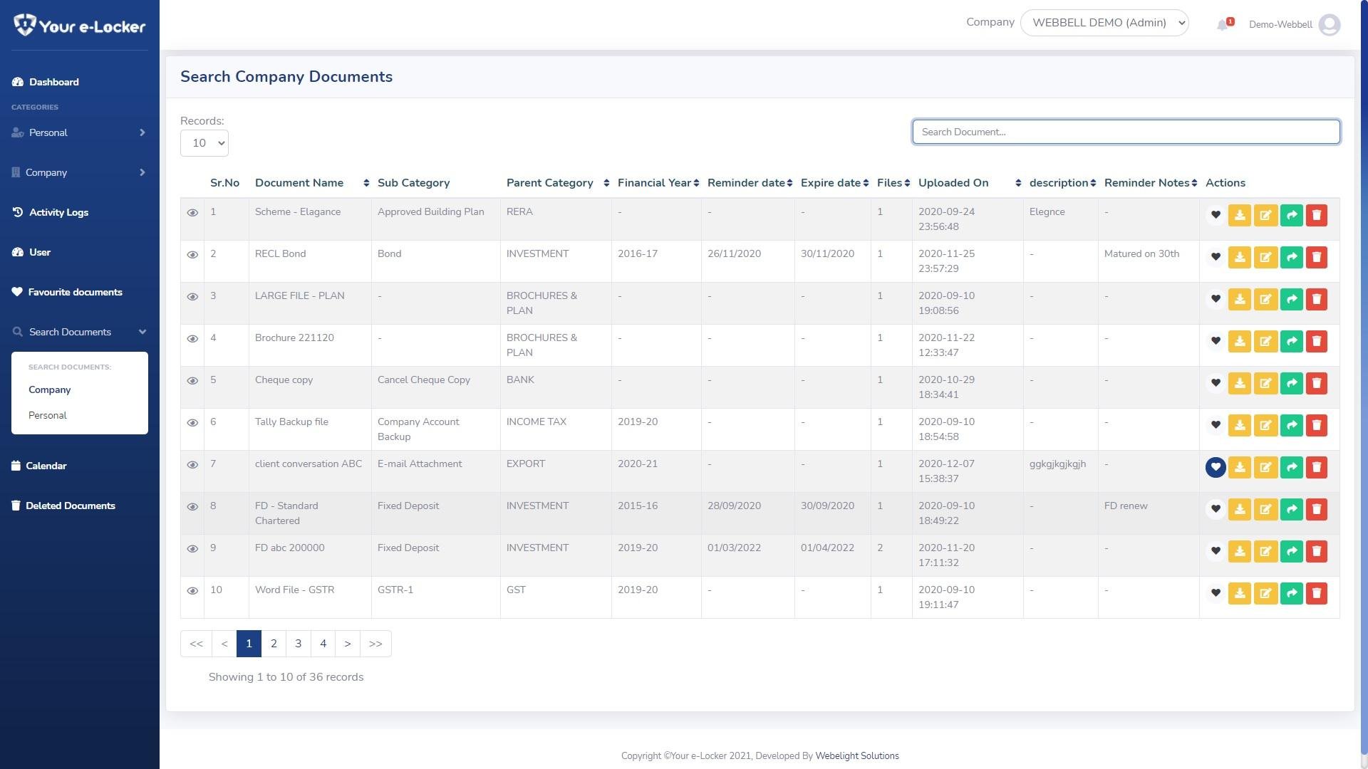 Your e-Locker is a Unique Cloud based Ultra Modern Documents Management Software with Features like Pre-defined Structure, Financial Year wise Sorting, Expiry Alert, Users Management and much more.