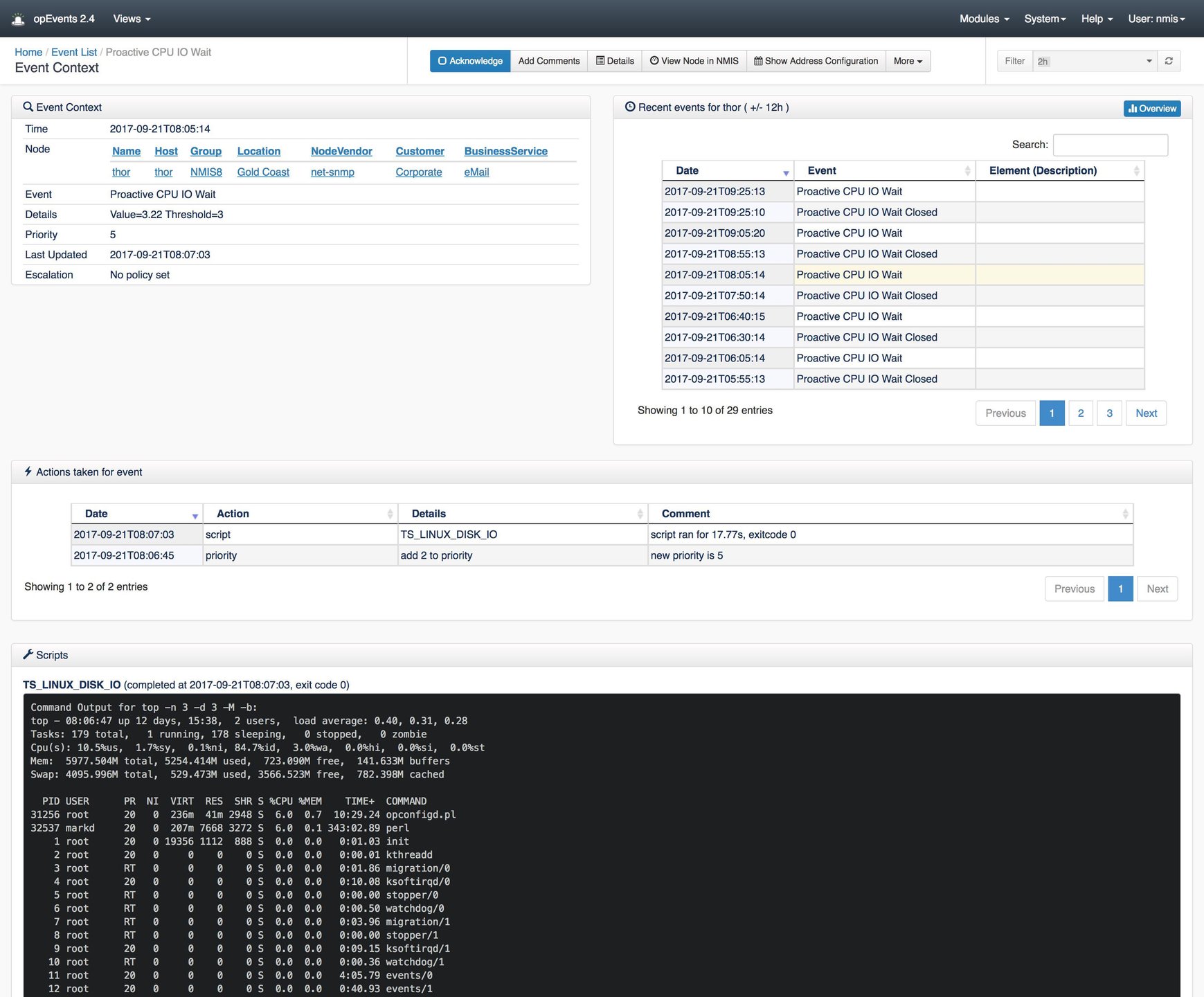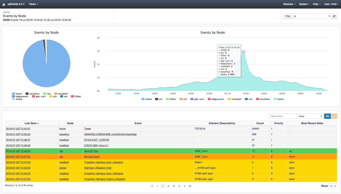 Configure your business policies to reflect your business environment. Set up to send alerts via SMS or email while following your escalation rules to one or more contacts. Outline your business hours to follow escalation or hierarchy differences and also allow for planned outages. Completely customizable notification settings that alert at the frequency that matches your demands. opEvents provides a centralised logging service for the purposes of operations, compliance and auditing. Complete management (centralised storage and audit capability) of logs from NMIS, applications, active directory, devices and cloud infrastructure. Enrich your network events with logs from multiple sources. Suppression and highlighting lists to ensure the right events generate notifications. Stateless and stateful events are applicable and events can be related to nodes. A set of normalized node properties are extracted and applied to the event.