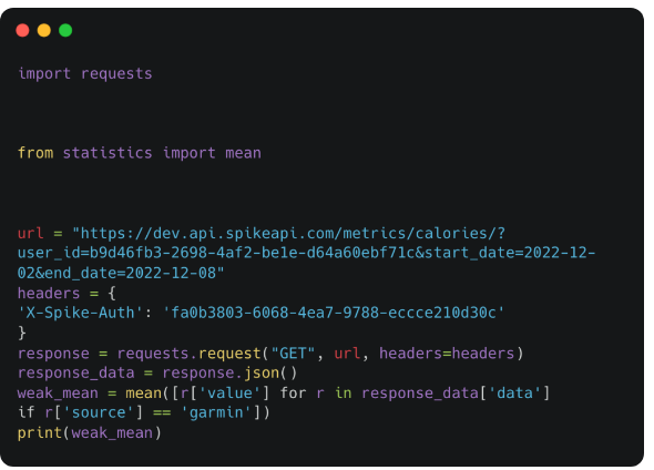 Connect your app to users’ real-time data from 300+ devices via a single API. Make that data usable with our white-label AI/ML services. One API with access to all the major wearable and IoT providers. Start testing right away with our easy-to-implement and well-documented API and shorten your development cycles. Enhance the functionality and UX of your application. Deliver personalized insights and increase user retention. Access wearables data in both raw and structured/normalized format while we maintain provider API upgrades, monitor new sensor releases, and API version control so that you don’t have to. Connect to Spike from any platform of your choice with as little as a few lines of code. Receive data that makes sense in an easily digestible format. Leave all that boilerplate management to us and concentrate on building value for your users. Spike technology, REST API end-points, and cloud architecture are designed with data privacy and security at heart.