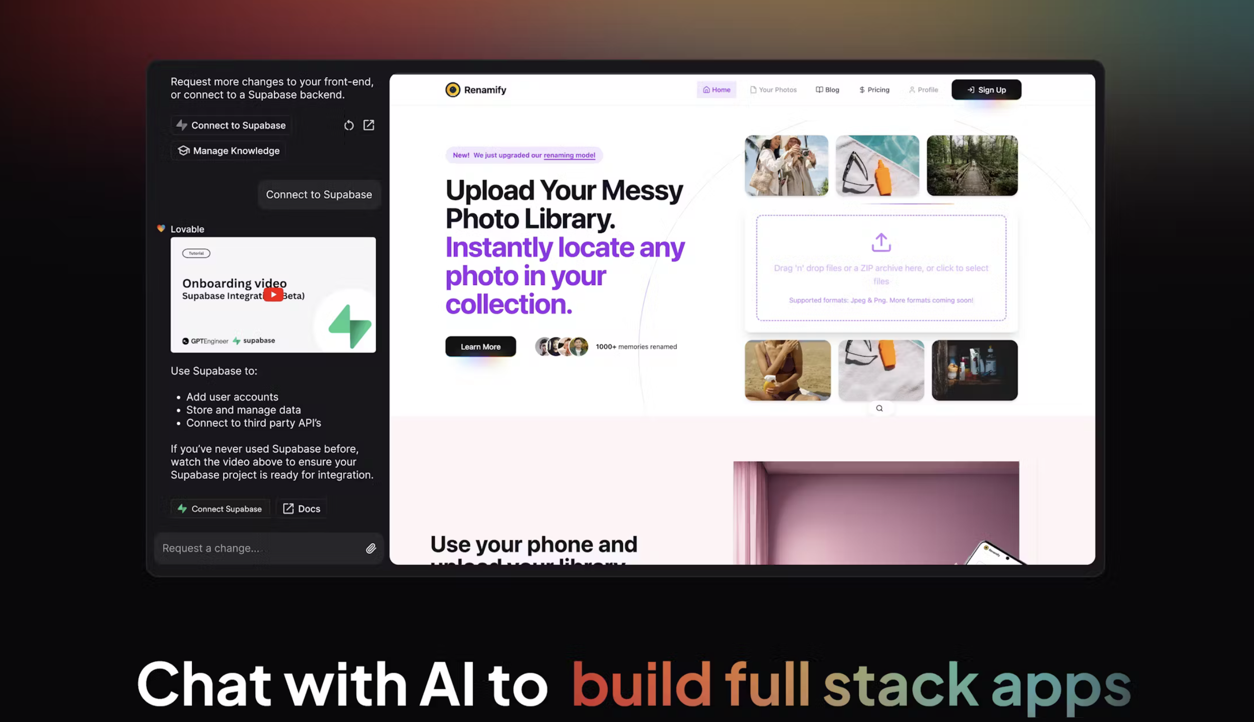 - Database integration and hosting with Supabase native integration.