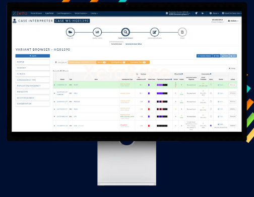 The unique XetaBase platform simplifies tertiary analysis, aggregating, indexing, and enriching secondary genomic data, enabling continual re-interpretation to unlock research and clinical insight. XetaBase accelerates data management and the cost-effective application of genomic data in the lab and clinic. XetaBase encompasses genomic scale, the greater the volume and complexity, the greater the insight and outcomes. XetaBase is a genomic-native technology, built on the open-source, OpenCB software platform to meet the scale, speed, and re-interpretation demands of genomic medicine. Zetta Genomics delivers genomic data management fit for the precision medicine age. XetaBase is a completely novel solution to the challenges of genomic data. It sweeps away obsolete flat file approaches to bring meaningful and actionable genomic data into the lab and the clinic. XetaBase empowers continual re-interpretation while scaling seamlessly as databases grow to encompass genome sequences.