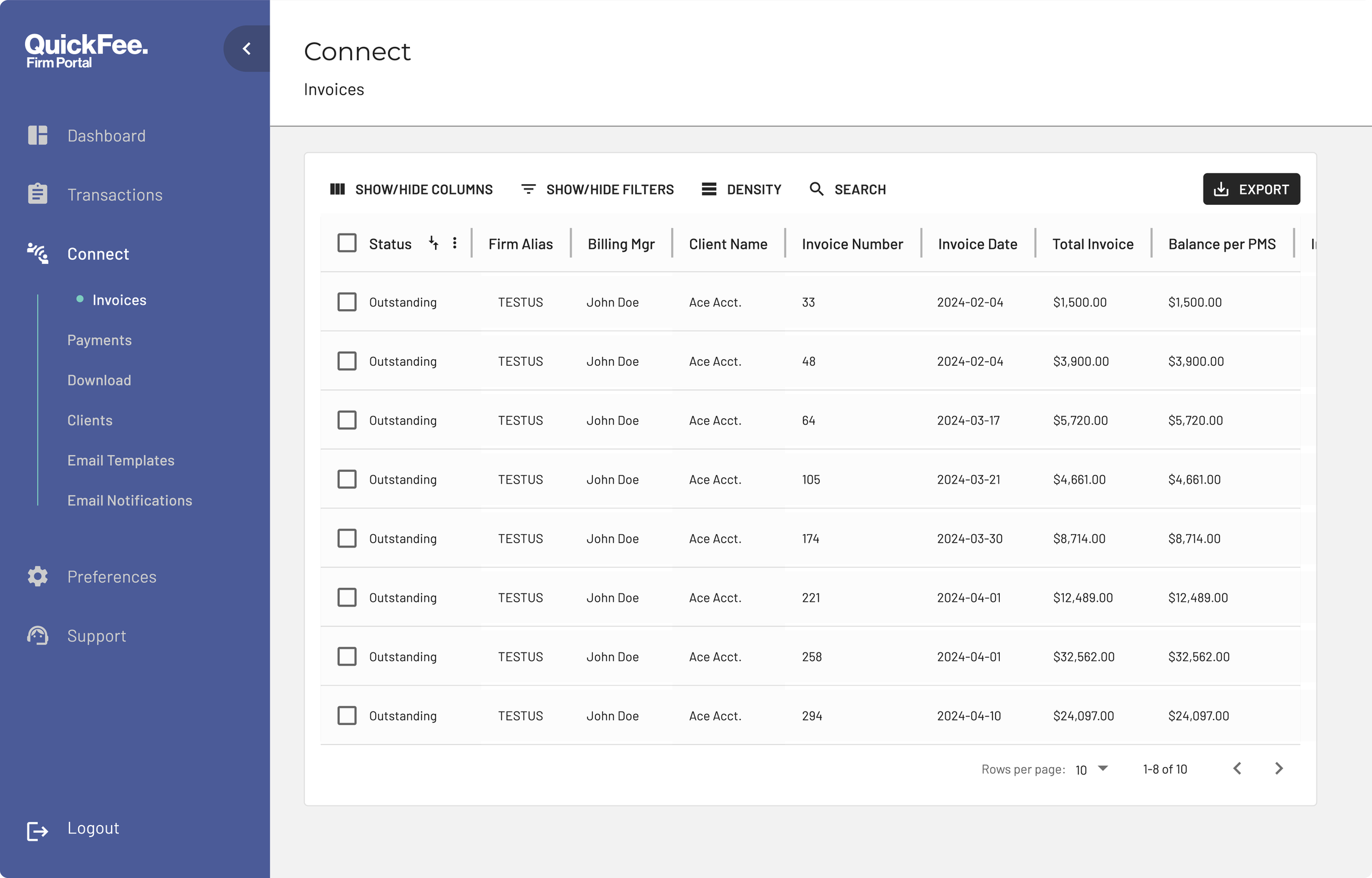 QuickFee (ASX: QFE) is a leading provider of payments, financing, and accounts receivable automation solutions for professional services firms, including 40% of the IPA Top 300 firms. Our platform is designed to streamline the Accounts Receivable process and accelerate revenue growth by integrating multiple online payment options and powerful invoicing tools within your practice management system.