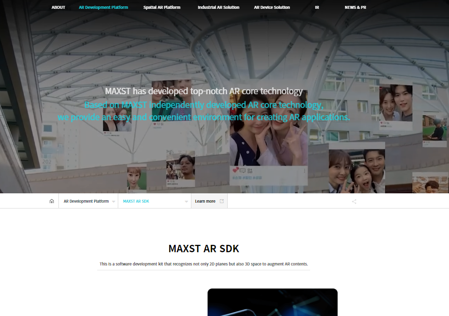 MAXST has world-class source technology in the field of AR platform. We provide tools and environments for AR application production, based on AR source technology that MAXST has developed on its own. MAXST's AR SDK is an essential source technology that is needed to realize AR functions. Currently, more than 10,000 developers in over 50 countries around the world use MAXST AR SDK. Of these, about 7,000 AR applications have been produced and are being used in various fields. The advantage of using MAXST's Sensor Fusion SLAM is that the limitations of AR space disappear, a seamless AR experience is possible, it can be used for autonomous driving purposes, and can be used for measurement. With MAXST VPS service, you can provide a variety of realistic content such as AR navigation, AR advertisement, AR game, as well as accurate positioning of users indoors and outdoors.