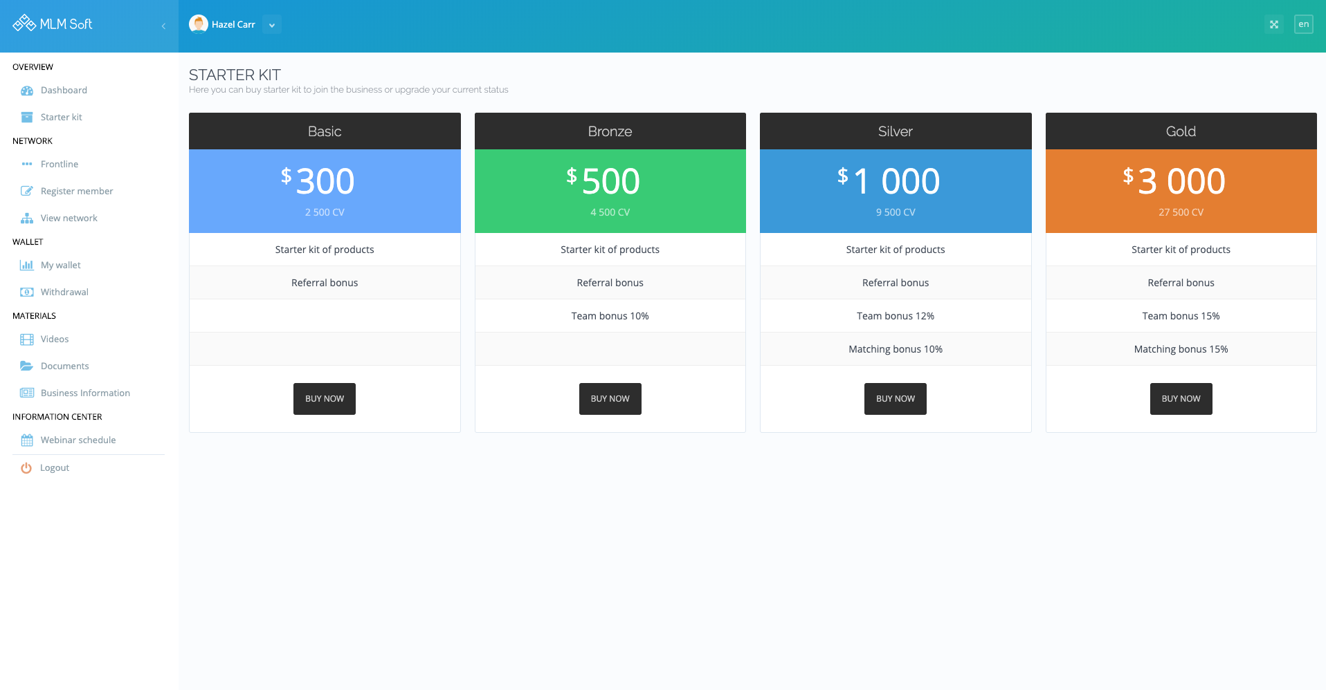 The platform is customizable in every point, starting with design and content, including enrollment scenarios, languages, currencies and wallets, access roles, messages, and reports. Our unique compensation plan engine can be configured to any algorithm.