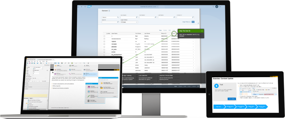 Reduce learning curves with contextually-relevant, timely, and proactive enablement content. Improve user adoption and the efficiency of software programs across your enterprise with e-learning content development that works for your employees. Provide the knowledge your employees need to succeed with SAP Enable Now. Advanced capabilities help you improve productivity, user adoption and the end-user experience, while creating, maintaining, and delivering performance support, learning material, and documentation content. Drive user adoption naturally and speed learning curves with contextually-relevant, timely, and proactive enablement content, directly within the solution. Start learning in the classroom, create online courses quickly, provide a knowledge portal for explorative learning, and deliver in-app performance support. Boost the value of your most important asset – your people – by using unique, customized, and cost-efficient training for faster time to competence.