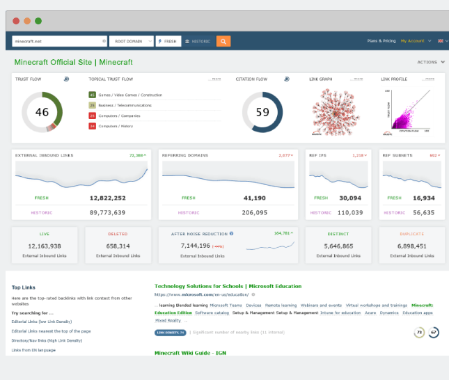 Find out who links to your website. Majestic maps the web to bring you the Link Intelligence data that you need to dominate your market. You don't have to be an SEO to enjoy award-winning data from one of SEO's most established brands. Web-based link investigation - with instant results. Find the best websites with our Site Explorer tool. Track your favorite sites with Majestic Campaigns. Use Link Context to find links near you and your competitors. Check out every site's top backlinks. Filter by topic, quality, language, and a range of industry-standard metrics. Compare top-level metrics for websites and URLs. Discover link opportunities by looking at your competitor websites. Look for mutual links between any two websites. Link Context is exclusive to Majestic, and gives you an entirely new way to discover and audit backlinks.