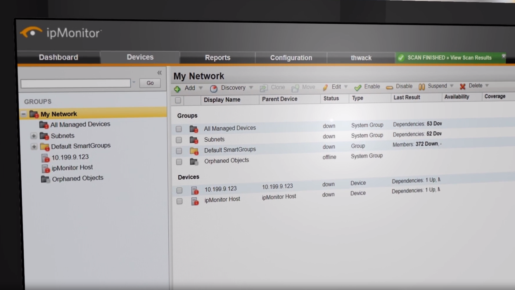 SolarWinds ipMonitor is designed to provide essential, affordable IT monitoring for network devices, servers, and applications. From a single console, you can see the status of your devices, CPU, memory, and disk usage, and any performance issues with your critical processes. ipMonitor is lightweight and can typically be up and running in minutes. It's a self-contained, dependency-free solution that's built so you can skip the hassle and expense of additional components.