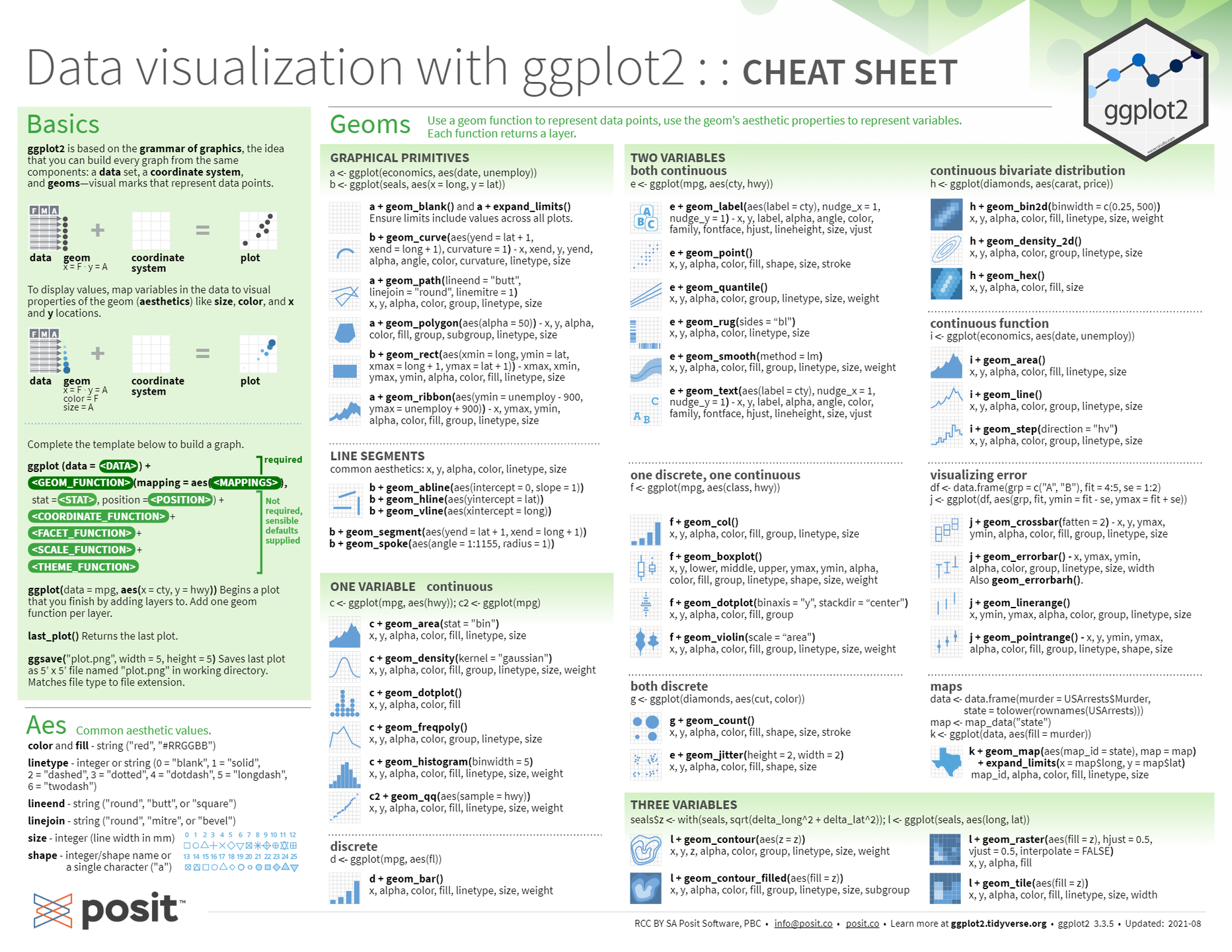 ggplot2 is a system for declaratively creating graphics, based on The Grammar of Graphics. You provide the data, tell ggplot2 how to map variables to aesthetics, what graphical primitives to use, and it takes care of the details. ggplot2 is now over 10 years old and is used by hundreds of thousands of people to make millions of plots. That means, by-and-large, ggplot2 itself changes relatively little. When we do make changes, they will be generally to add new functions or arguments rather than changing the behavior of existing functions, and if we do make changes to existing behavior we will do them for compelling reasons. If you are new to ggplot2 you are better off starting with a systematic introduction, rather than trying to learn from reading individual documentation pages.
