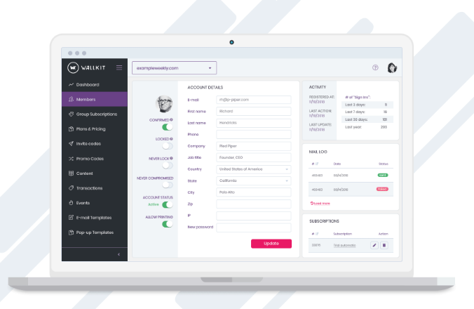 Wallkit is a paid-subscription platform designed for media companies and digital content owners. Publishers quickly start collecting subscription fees on a cloud-based system. A revenue-generating system that can be left to run itself or a tool that can be leveraged by an account team to maximize sales. The networked system allows readers to access content across media titles and even publishers, and publishers to earn revenue from other content owners. After set-up, Wallkit shares your sales success by charging fees only when you charge your subscribers. Secure Amazon services, including EC2, SES and S3. Secure connection with payments and sales systems. WK can optionally run on a self-hosted installation. Wallkit is completely API based, giving you the option to let your development team handle integration, or outsource it to WK developers. Wallkit supports an array of CMS, payment and software, including WordPress, HubSpot, Streak, MailChimp, Stripe, Slack and Braintree.