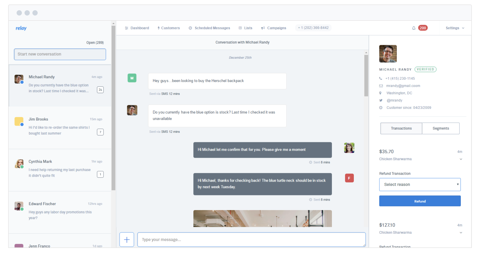 Send & receive text messages, set auto-responders, schedule notifications & accept payments using your existing business phone number. Respond to customer inquiries via SMS or Facebook Messenger so you can provide better support quicker. Automate important notifications like bill payment due dates, appointment reminders, etc. via text messaging. Segment your customers and send them targeted text messages to drive more sales. Charge customers, or create subscriptions within a text conversation. No need to switch between apps. 90% of text messages are read within 3 minutes. interact with customers, employees and contractors in real-time using mobile messages. Untether customer support from your website's "live chat" by giving customers the flexibility to message you anytime, even on the go. Create rule based drip campaigns to nurture first-time and VIP customers so you can grow your business.