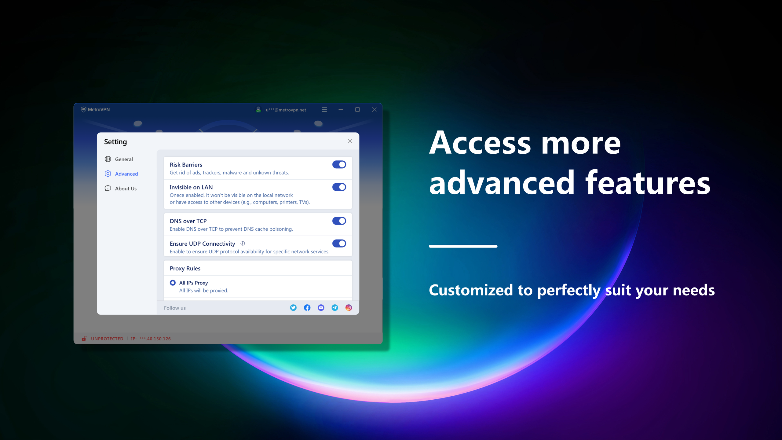 Fast Speeds: With ultra-fast servers in over 50 regions, MetroVPN provides unlimited speed and bandwidth, ideal for gaming, streaming, and browsing.