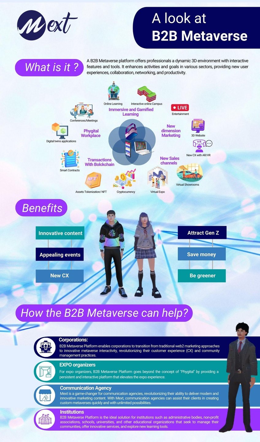 Mext is a groundbreaking SaaS platform that redefines how interactive 3D spaces are created, with a strong emphasis on learning and engagement. Powered by advanced AI-driven customization and real-time capabilities, Mext enables businesses and e-learning providers to effortlessly design immersive digital environments that foster dynamic learning, collaboration, and exploration. Whether for onboarding, active learning, product showcasing or events, our platform enhances every interaction with intuitive tools and seamless integration. Embracing the immersive internet, metaverse, and Web3 era, Mext empowers users to confidently create, navigate, and excel in these evolving digital landscapes. Step into a future where learning and innovation converge, making 3D experiences more accessible, impactful, and transformative.